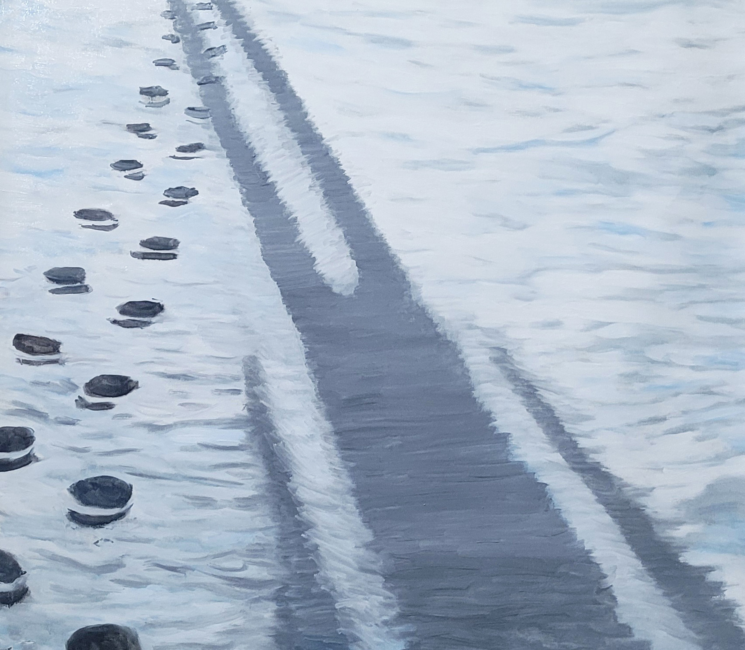 These paintings approach winter as a psychological condition rather than a season. Stillness, isolation, and temporal pause dominate, positioning snow as a site where memory is preserved and perception sharpened. The series treats landscape as an internal state, shaped by absence as much as by form.
